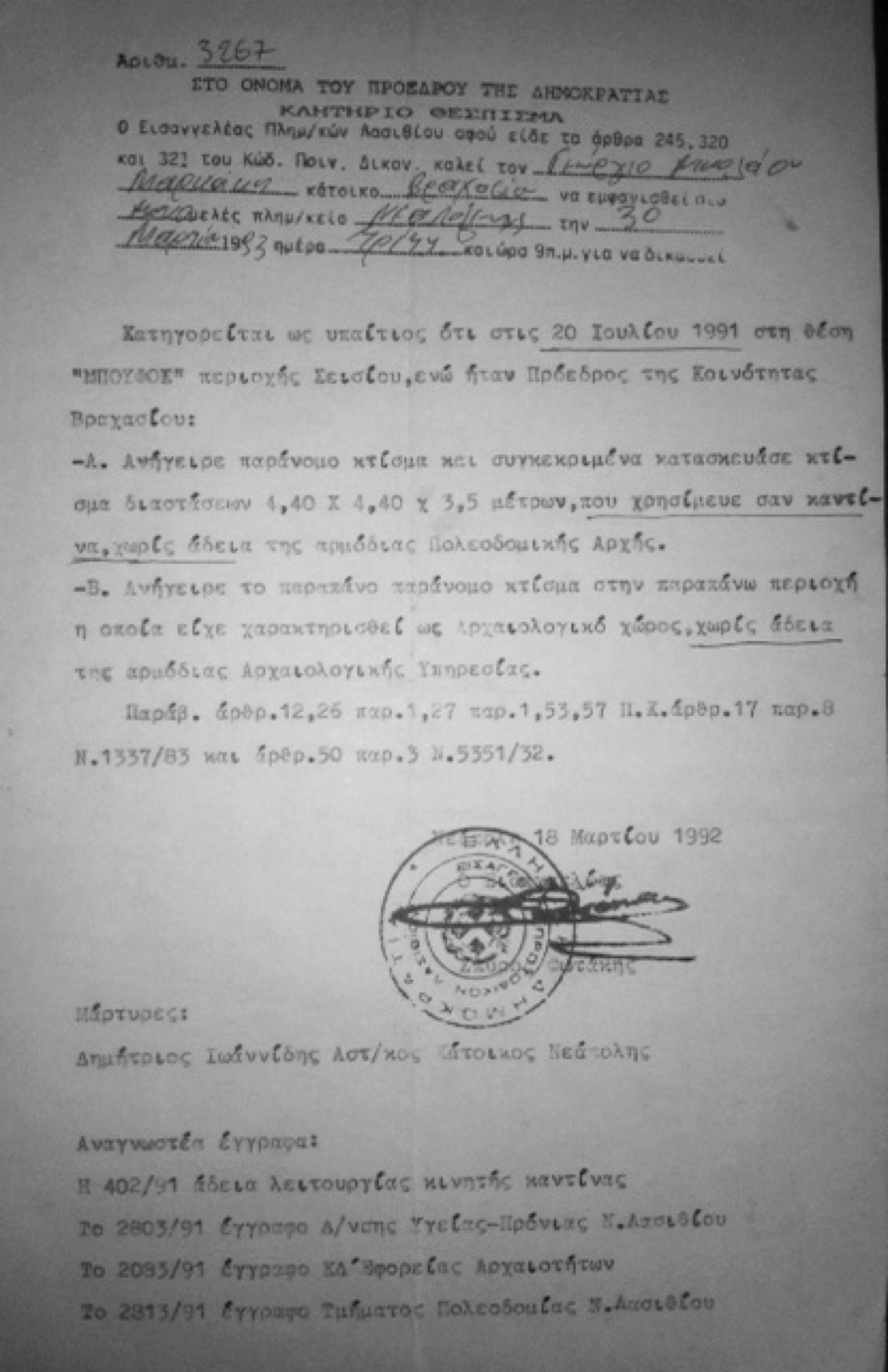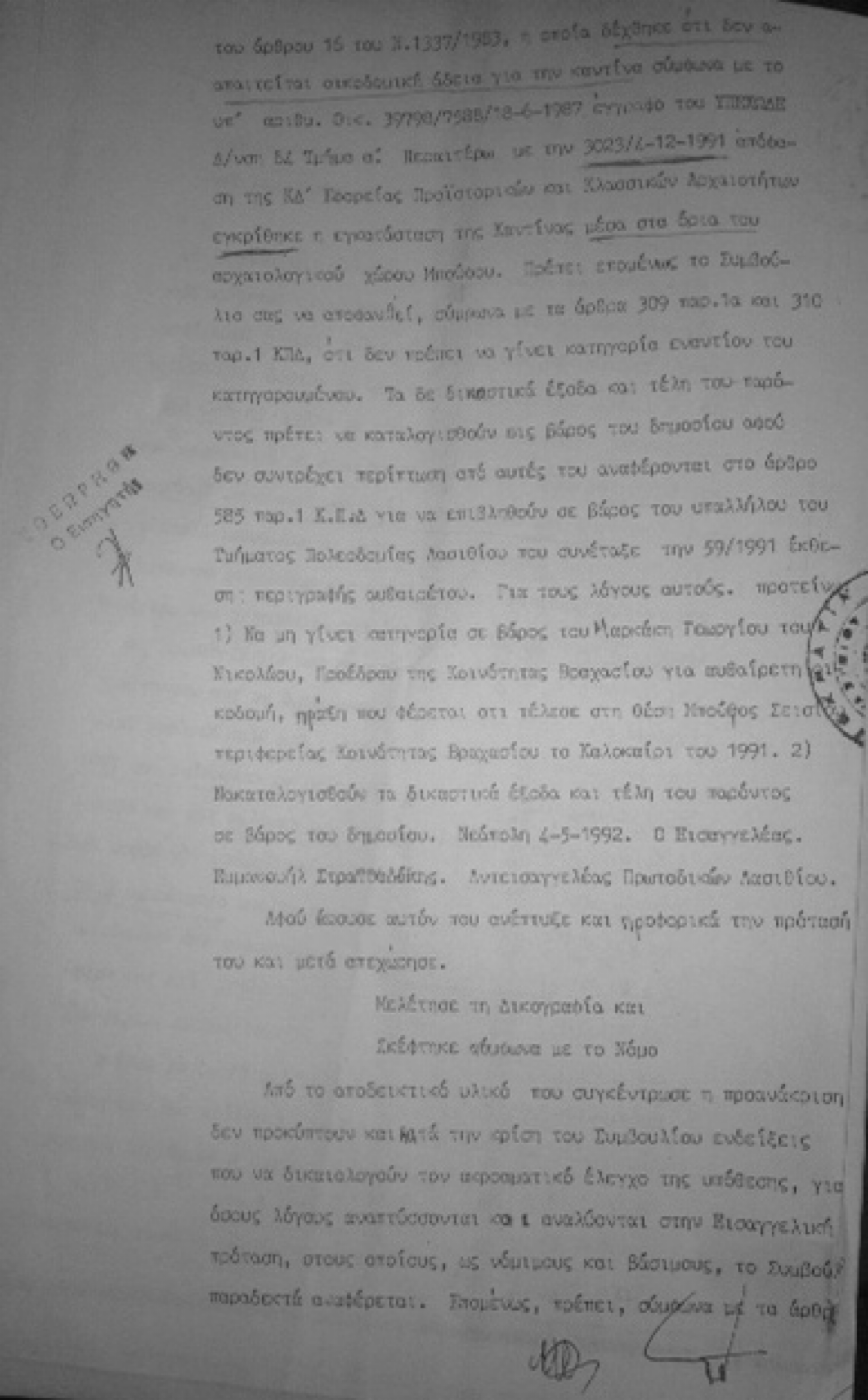 * Η καντίνα έχει τις ίδιες διαστάσεις και είναι στην ίδια θέση (από το 1991), στο – ενός περίπου στρέμματος – αλσύλιο του ¨ΜΠΟΥΦΟΥ¨. Το αλσύλιο αυτό αποτελεί ιδιοκτησία της Τοπικής Κοινότητας Βραχασίου (νομή και κατοχή πάνω από 20 χρόνια, χωρίς καμία σχετική αμφισβήτηση από γειτονικές ιδιοκτησίες).